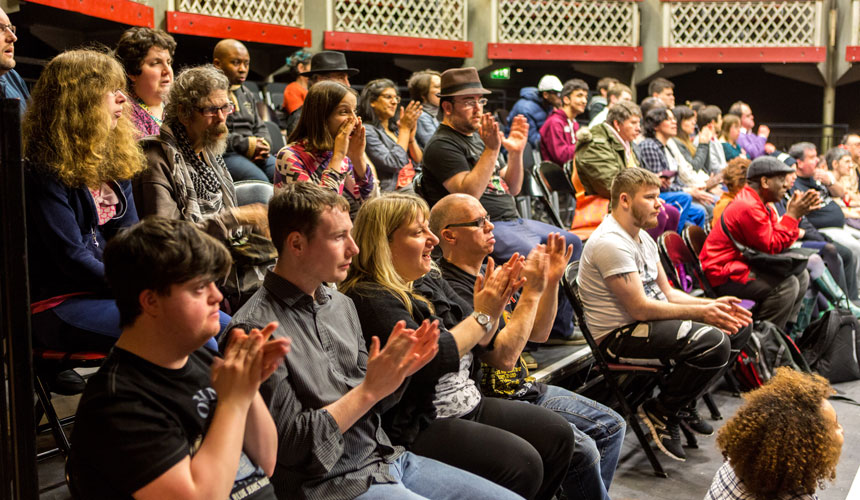 Before the final performance of CONTAINED at The Albany, Deptford in March 2016, Mind the Gap hosted tea and trailers. It was an exciting opportunity for learning disability companies from around the UK to come together, meet, share and play in a fun and supportive environment.